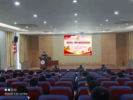 随后,范勇老师以《信仰伟力: 百年大党何以风华正茂》为题进行专题授课。范勇老师首先从开展党史学习的重要意义、目的、四大工作要求和六大重点任务以及百年党史的四个历史时期和四个辉煌成就方面进行了讲述;接着以中国共产党的诞生、发展和强大为时间脉络,从“信仰是中国革命胜利之本、理想信念是共产党人信仰之‘钙’、坚守信仰 不忘初心”三个方面展开,通过讲述共产党人李大钊、陈独秀、瞿秋白等先进人物事迹和抗美援朝战争伟大胜利,使参会人员深刻感悟到共产党人坚定理想信念、不忘初心使命的英勇气概。