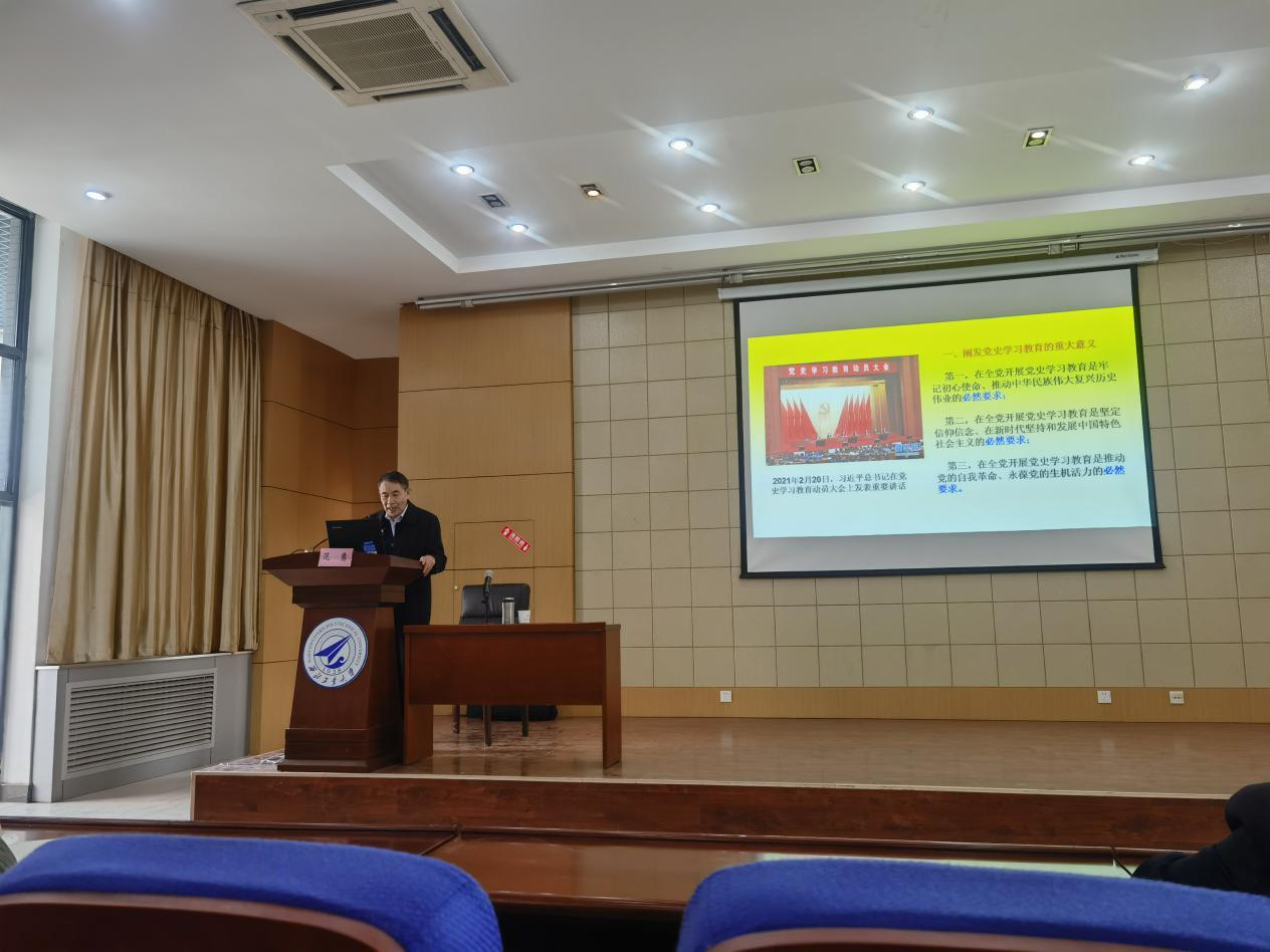 为深入学习贯彻习近平总书记在党史学习教育动员大会上的讲话精神,积极落实学校关于党史学习教育部署安排,色播 于3月25日上午在长安校区开展了党史学习教育动员暨专题党课辅导。会议由色播 党总支书记王高祖主持,省委党校(省行政学院)原副巡视员、教学督导范勇老师作专题党课辅导,全体教职工和学生党员参加。