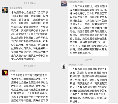 10月30日,色播 组织各学生党支部党员认真观看了中共中央举行的介绍党的十九届五中全会精神的新闻发布会,并通过支部会议和微信群等方式就关心的热点问题进行热烈讨论。