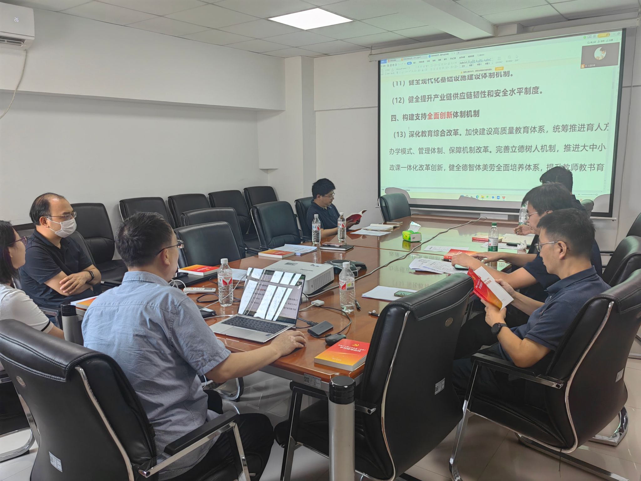 张文涛首先带领与会人员认真学习了党的二十届三中全会做出的《中共中央关于进一步全面深化改革 推进中国式现代化的决定》的15个方面60个要点的内容,重点学习了第四方面“构建支持全面创新体制机制”的3个要点,并结合学院的学科专业建设、人才培养、协同育人和学生实习实践制度等相关内容进行了讨论。会议传达了学校暑期务虚会暨新学期中层干部会上宋保维校长围绕学习贯彻党的二十届三中全会精神和学校下一阶段发展思路所做的报告,对学校下半年重点工作的安排部署进行了深入学习和重点讨论,学习了李言荣书记对新学期重点工作提出的工作要求。